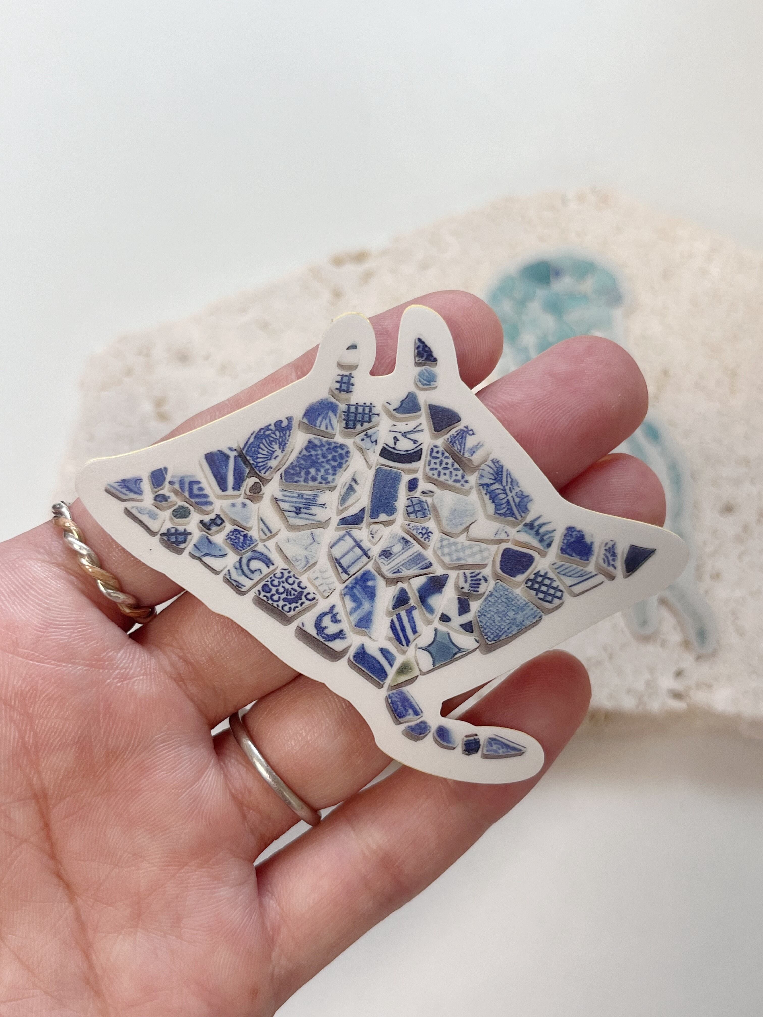 こちらはステッカー製作様に作ったデザインのため、実物のアートが誰かの間になることはなく、ステッカー限定の組み合わせのシーグラスたちです。